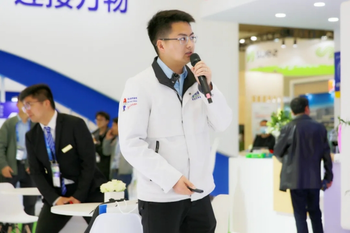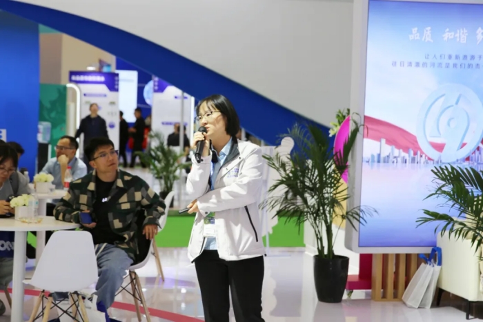 本屆環(huán)博會上,華騏環(huán)保積極與國內外環(huán)保領域的專家學者和企業(yè)代表充分交流,共同探討環(huán)境污染治理領域的前沿技術與最新解決方案。華騏環(huán)保副總裁連宏偉在接受E20環(huán)境平臺采訪時指出,作為創(chuàng)業(yè)板上市公司、國家級“專精特新"小巨人企業(yè),華騏環(huán)保不斷提升自主創(chuàng)新水平,通過“一體多翼”的集團化戰(zhàn)略布局,堅持走技術產品化的高質量發(fā)展之路,加快形成新質生產力,以新技術、新產品創(chuàng)造新價值,以“高質服務”擘畫未來,以“智慧賦能”擎鑄未來。本次環(huán)博會,華騏環(huán)保的八位產品經理現場分享了“BAF智慧工藝的探索與實踐”、“綠色低碳裝配式污水處理廠”、“魔方智水多維場景污水治理的實踐與思考”、“iMagcoH磁混凝沉淀池技術及應用”、“iDebed深床反硝化濾池技術及應用”、“臭廢氣收集及處理系統(tǒng)解決方案”、“智能控制器在環(huán)保領域的應用與探討”等核心技術與裝備的精彩內容,充分展現了華騏環(huán)保在水務行業(yè)領域的綜合實力,亮點紛呈、內涵豐富,吸引了眾多與會嘉賓及業(yè)內人士駐足聆聽、互動交流。